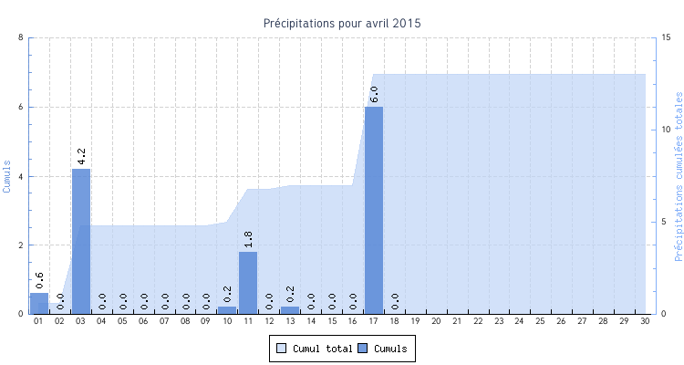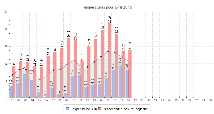 | 15 | 6.8 °C | 25.9 °C | 16.2 °C | 1.2 km/h (11.3 km/h) | ESE |