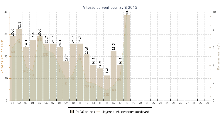 | min | max | moy | Vitesse (rafales) | Secteur | ||